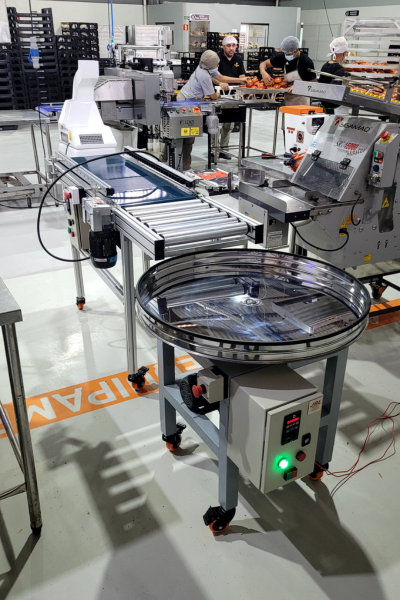 Solução com esteira transportadora + mesa de giro, assim otimizando seu processo com automação e qualidade.