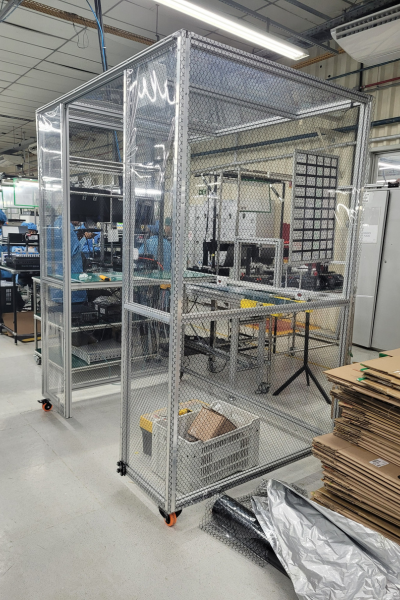 Estrutura modular em alumínio projetada para isolamento, proteção e organização de áreas, máquinas ou processos industriais, proporcionando segurança, controle ambiental e fácil integração à linha de produção.